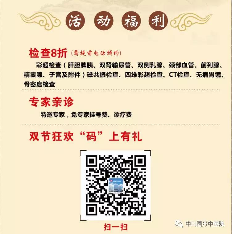 只需转发本活动微信到朋友圈,关注微信公众号“中山国丹中医院”,活动链接:【转发送中药驱蚊包一个】双节福利,检查八折!
